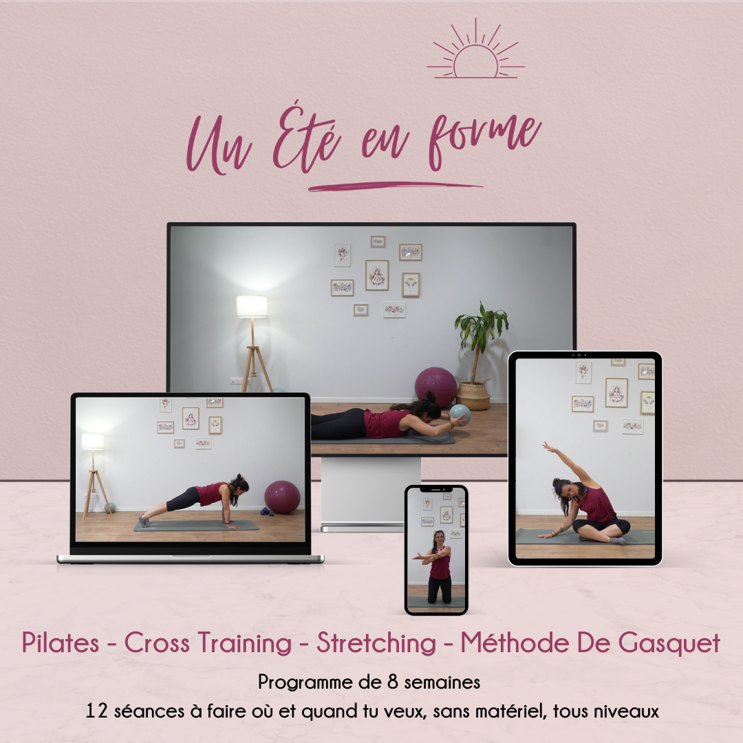 Mon programme 100% en ligne, destiné aux femmes (messieurs vous êtes aussi les bienvenus !) qui veulent pratiquer une activité physique régulière, sécuritaire, respectueuse de leur corps pour être en forme durant ces deux mois estivaux et prendre soin d'elles et de leur santé grâce à une pratique sportive adaptée à leurs besoins et leurs contraintes.